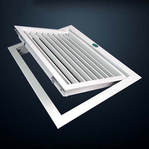 1.整個(gè)風(fēng)口呈活門形式,活門與邊框間開(kāi)關(guān)自如,有利于安裝與過(guò)濾器的配套使用,常用于客房的回風(fēng).與本風(fēng)口配套的FK-5過(guò)濾器是固定在活門上,因此只要用手輕撥活門上兩邊的門栓,活門即可打開(kāi),邊能夠從活門上抽出或插入過(guò)濾器;關(guān)閉時(shí),只要將活門推上,兩邊彈簧門栓即可自動(dòng)上鎖,外表平整如一。