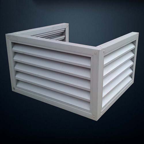 防水百葉,葉片固定式,其葉片傾斜45度設(shè)計(jì)成特別的形狀,具有防水濺入內(nèi)部的功能。一般作安裝在外墻上的通風(fēng)口;外墻空調(diào)防水百葉罩,根據(jù)室外空調(diào)主機(jī)尺寸定做為開口框架形式,框架之間百葉的連接,既使得外墻美觀;廣泛用于美化小區(qū)樓盤,遮掩室外空調(diào)主機(jī),美化樓宇建筑的外觀。
